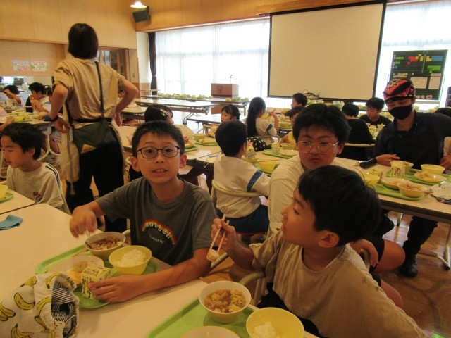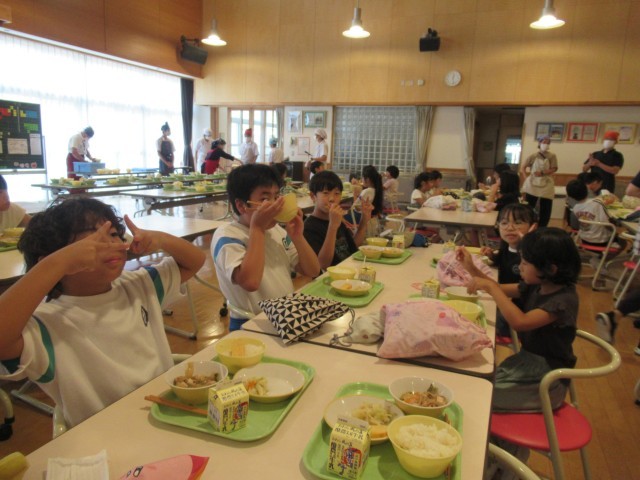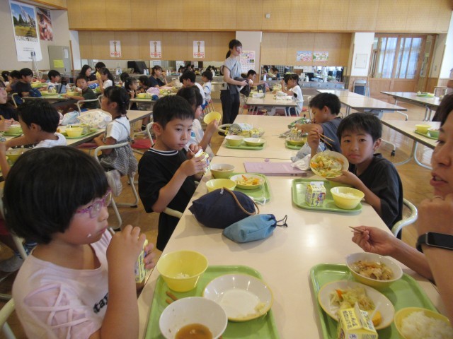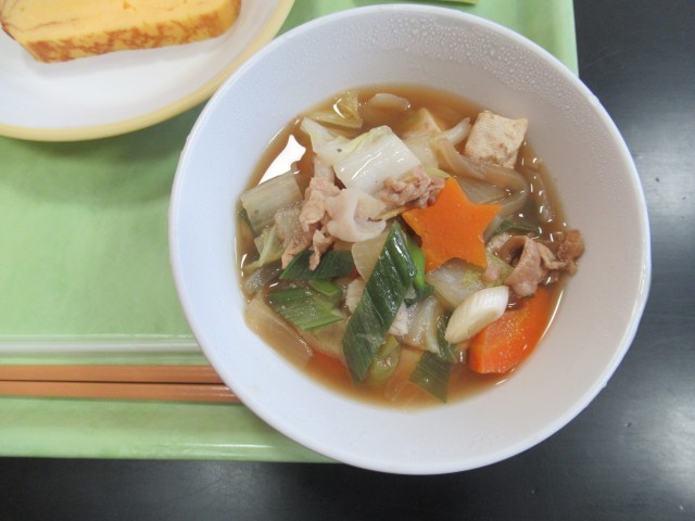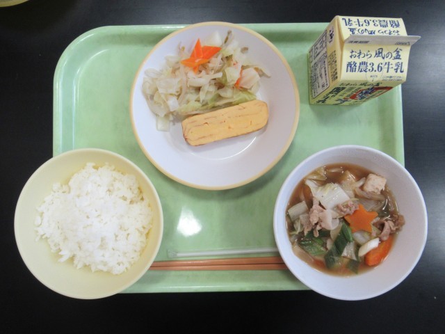 厚焼き玉子は、甘さと塩味が絶妙の塩梅で、白ご飯が進みます。ご家庭の味とは違っていて、子供によっては苦手な場合があるかもしれません。野菜ソテーは、優しいお味でした。隠し味に、コンソメ顆粒が少し使われていました。本日もひと手間かけた、調理員さんの子供たちへの愛情がキラリと光っていました。今日もごちそうさまでした。