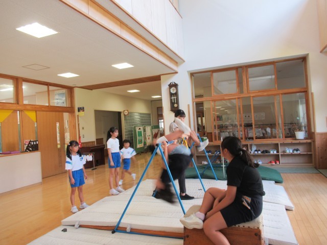 鉄棒練習に取り組んだり、芝生広場に虫捕りに出たり、FLSで友達と縄跳びや鬼ごっこをしたりと、子供たちは生き生き輝いています。