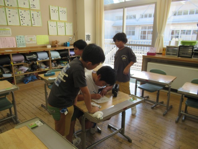汗びっしょりになって戻ってきた子供たちの飼育ケース内のトノサマバッタの大きさにびっくり!自然の豊かさを再認識しました。