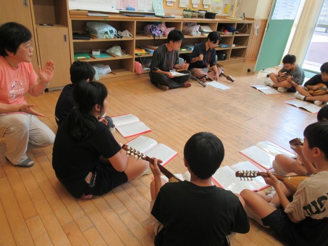 前回から、富大のギターマンドリンクラブの学生さんが指導に加わってくださっています。