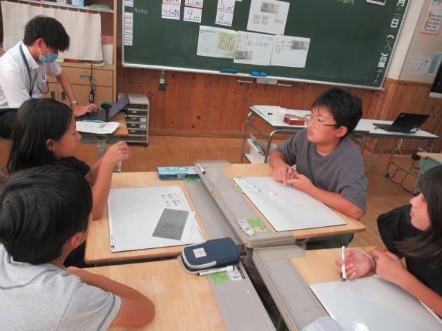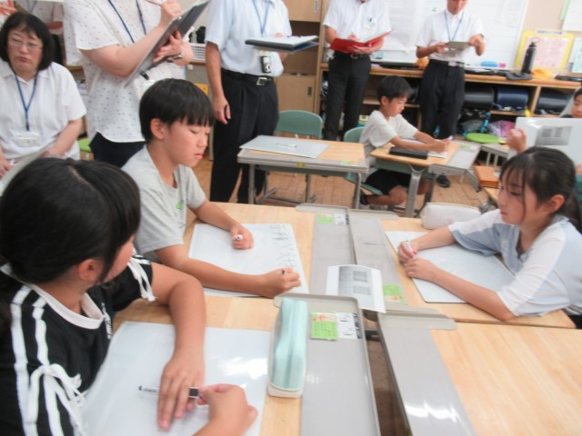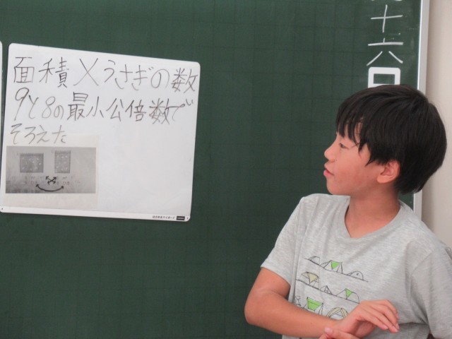 自分の考えを何とか伝えようとする場面で、思うようにいかず「助けてー」とみんなに投げかける子供、悶々としていた課題がすっきりした瞬間の「あ、そっかー!」と学級から湧き上がる声、助けたり助けられたり…、常に仲間の考えを真剣に理解しようとする学級の子供たちの姿がありました。みんな、集中して取り組んでいました。