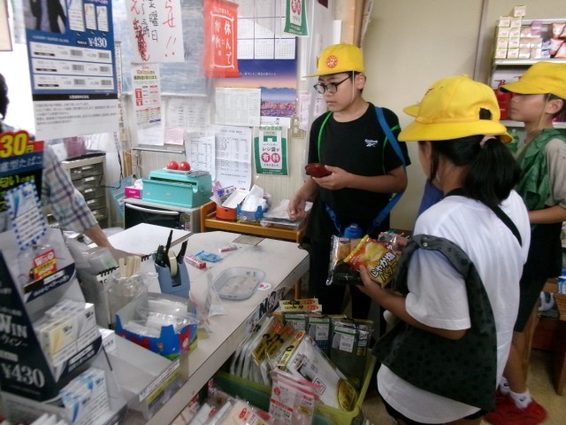 家庭科の学習で、吉田商店に行き、買い物をしました。ものを購入することは、売買契約が成立していることであると意識しながら商品を選びました。消費者としての意識を高めました。