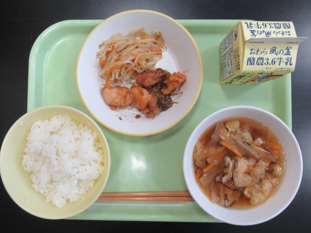 鶏肉のねぎソースかけは、最高でした!白ご飯が進みました。主菜、副菜、汁物と、写真の見た目が同系色でしたが、中華風に和風、一つ一つ味に個性があり、どれもおいしくいただきました。小さなハート型ニンジンが3個入っていました。調理員さんのお気持ちが有難いです。子供たちは、どうだったかな?