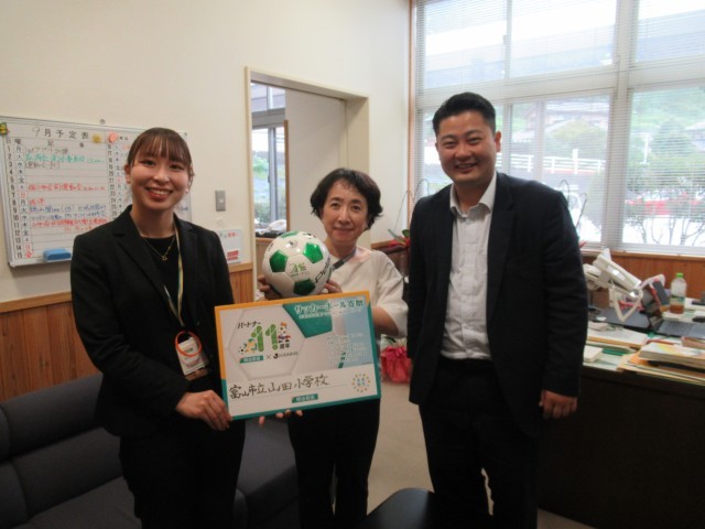 19日(金)、明治安田生命さんより、山田小学校にサッカーボールの寄贈がありました。