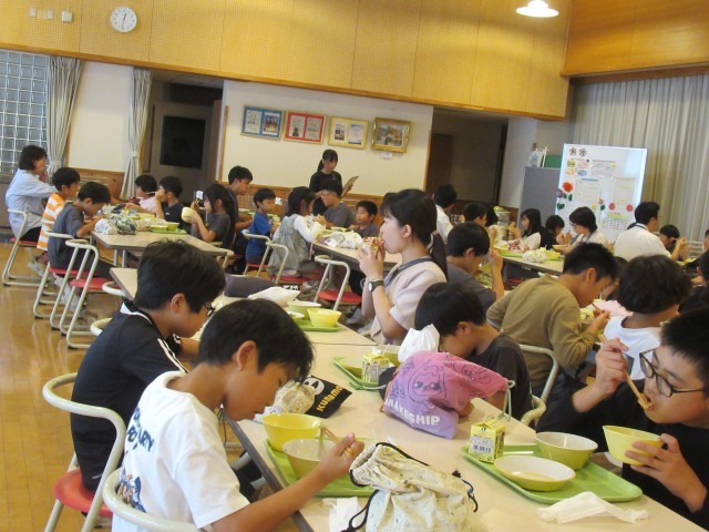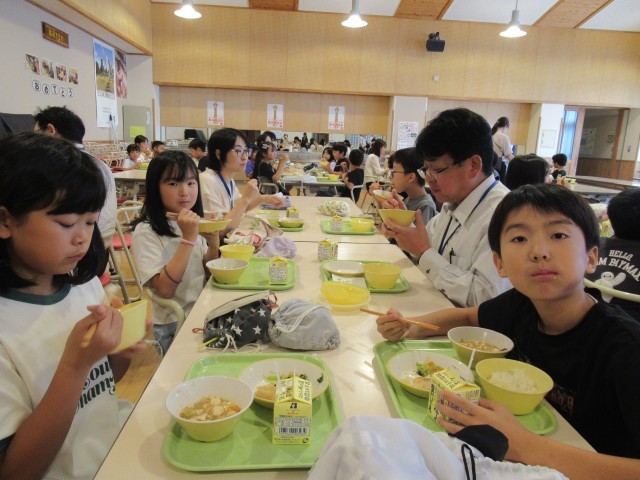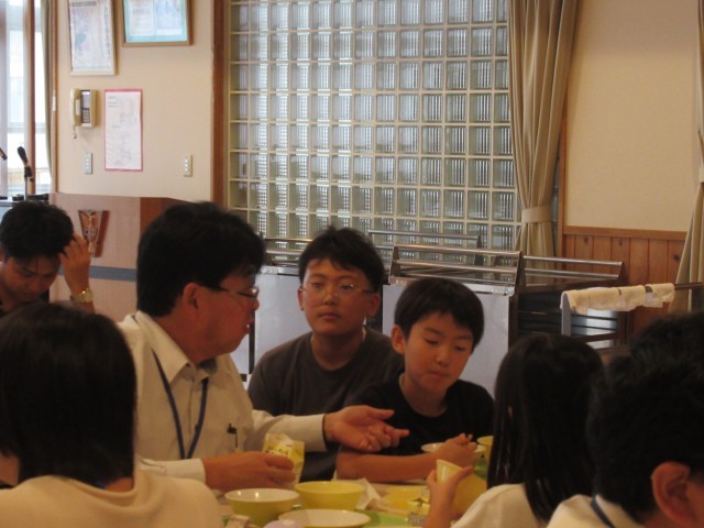 今日の給食には、3月まで山田小学校にいらっしゃった黒田校長先生が、子供たちと一緒にランチルームで給食を召し上がられました。