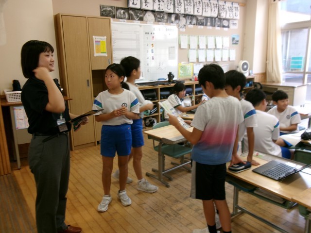 総合的な学習の時間では、ふるさと山田のために自分たちができることを考えています。今日は、地域おこし協力隊の金子さんに来校していただき、貴重なご意見を聴くことができました。これからも金子さんのお力をお借りして、活動を進めていきたいと思います。よろしくお願いします。