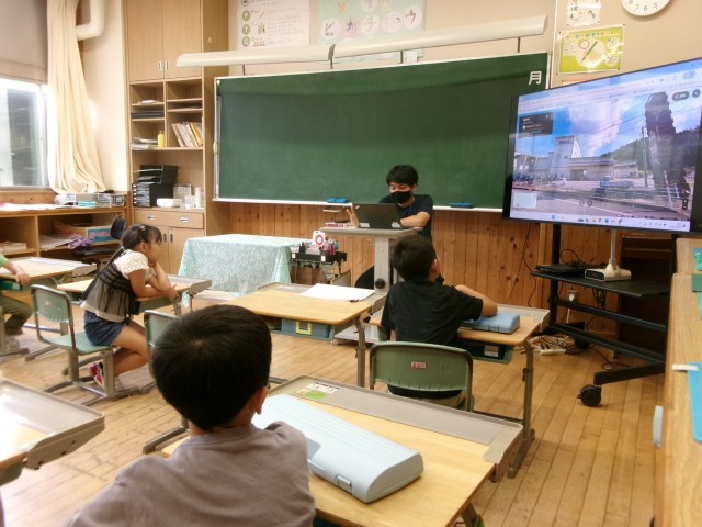 「カントリーエレベーター」「山田の案山子」等マップの画像を見ながら、知っていることを聴き合う子供たち。