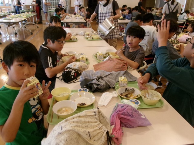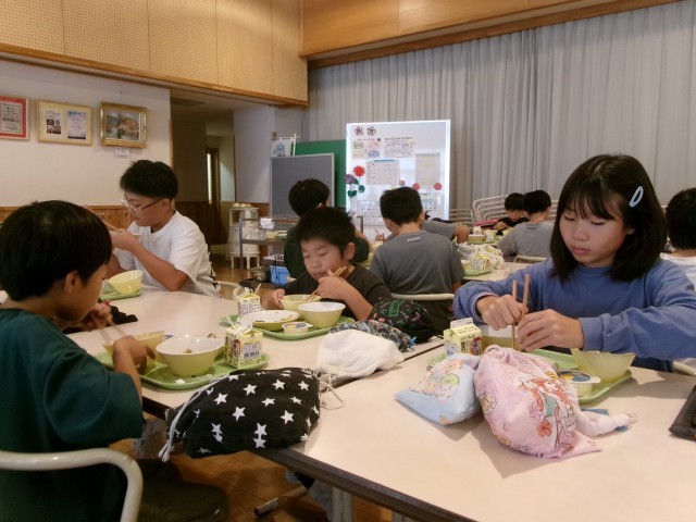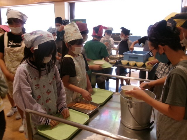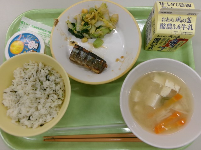 今日のメニューは、〇菜めし〇牛乳〇さんまのマーマレード煮〇コーン和え〇団子汁〇お月見ゼリーです。