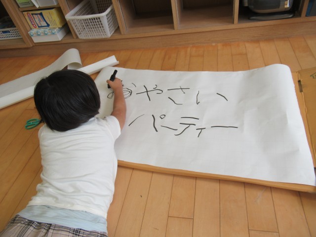 夏休みに収穫したポップコーン、これから収穫予定のさつまいもを使って「おやさいパーティー」を開くことになりました。誰を招待するか、どんなことをするかみんなで相談し、準備を始めています。どんなパーティーになるのか楽しみです。