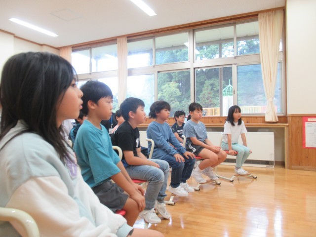 2限、3・4年生の子供たちは、朗読家鈴木優子先生による朗読の世界を楽しみました。冒頭の物語「モチモチの木」から、一気に子供たちは作品世界に誘われ、登場人物に心を寄せて聞き入っているようでした。言葉の美しさや響き、表現のすばらしさを感じ取った一時間でした。