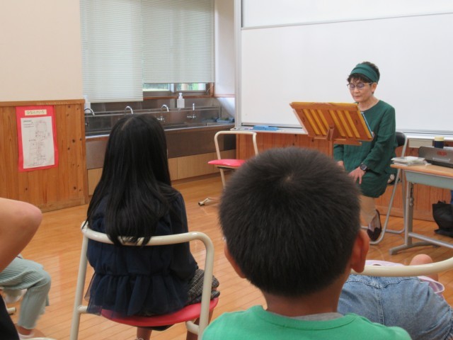 3限、1・2年生の子供たちは、朗読家鈴木優子先生による音読の世界を楽しみました。