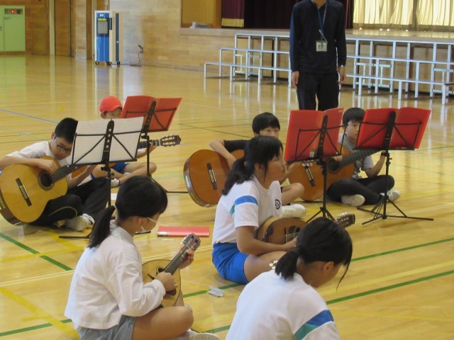 学習発表会まで1週間となりました。校舎内では、各階からマンドリン・ギター練習の音が聴こえてきます。子供たちは、目当てに向けて一生懸命取り組んいます。今朝は、「いつも何度でも」「勇気100%」の曲をみんなで聴きながら口ずさむ子供たちの姿が見られました。先生が、「心で歌うんだよ」と話していらっしゃいました。曲を鑑賞し終えた子供たちの演奏は、曲想に合わせて確かに変化していました。