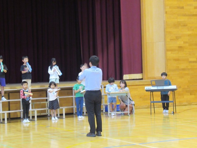 「アイアイ」の歌や合奏、「帰り道」の歌を体育館でじっくり聴かせていただきました。