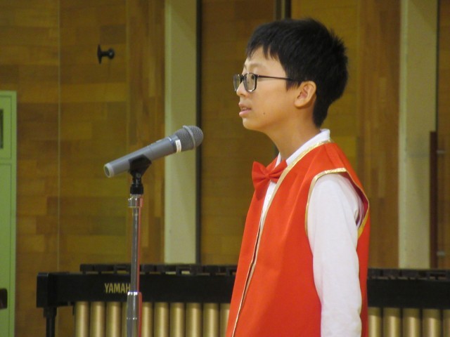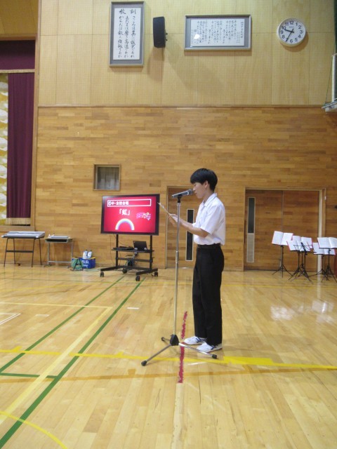 今年度のスローガン、児童会は「心を一つ ~わたしたちが達成感をもてる すばらしい発表会にしよう~」、生徒会は「響け ~感動のハーモニーを~」を目指して、児童生徒が練習の成果を発揮する舞台の幕開けです。