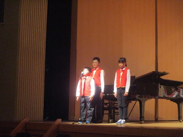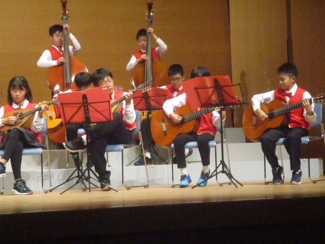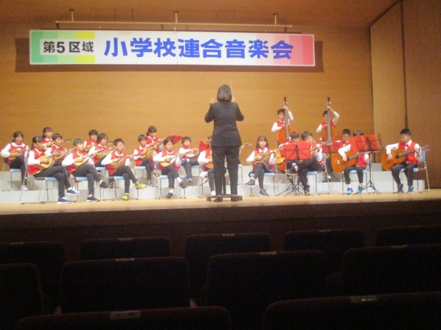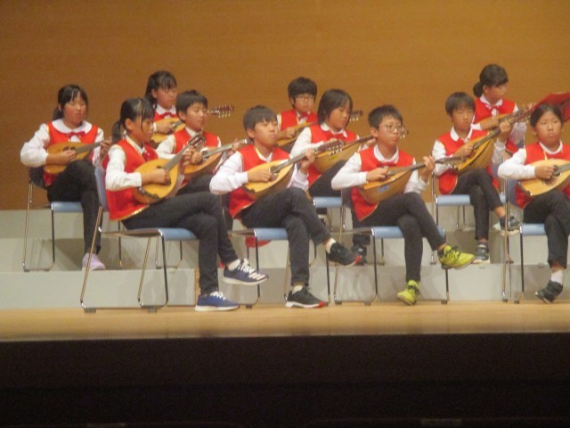 婦中ふれあい館で、婦中、八尾地域の小学校が集まった連合音楽会がありました。山田小学校は、マンドリン演奏を披露しました。最初の出番でしたが、堂々と心を一つにした合奏でした。また、帰校の振り返りでは、「他校の合唱の迫力や一体感があった」と話していました。