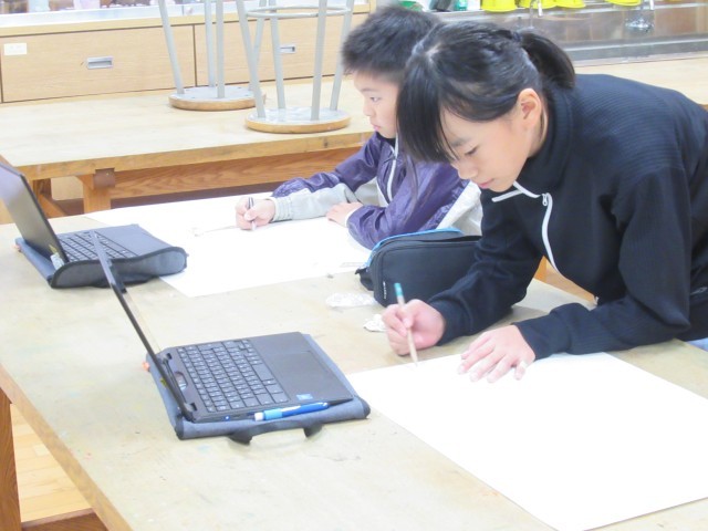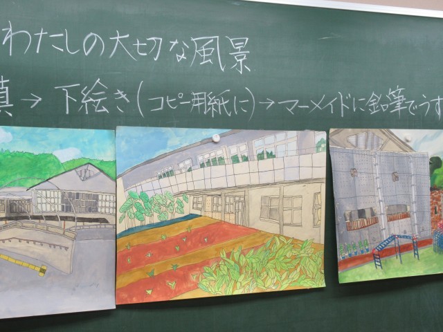 そんな中、図工室で、6年生が真剣な面持ちでマーメイド紙と向き合っていました。題材は、「わたしの大切な風景」。6年生の小学校生活も半年を切りました。悩みながらも、それぞれの大切な風景を夢中になって描いていました。