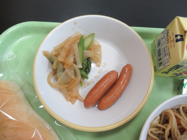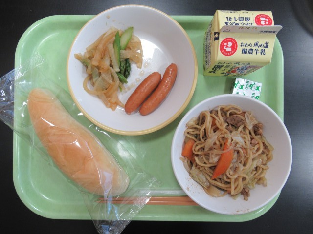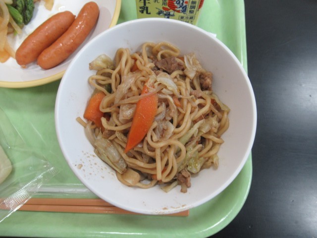 爽やかな秋晴れの今日、給食メニューは、多くの子供たちが好きであろう焼きそばやウィンナー。コッペパンに挟んで、おいしく楽しくいただくことができそうです。