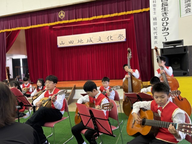 11月3日(月)文化の日、4年生以上の児童は地域文化祭に出演し、「いつも何度でも」「勇気100%」を地域の皆様に披露しました。足を組み弦をつま弾いている姿は粋で、一曲一曲に心を込めて演奏している様子が伝わってきました。今年度で、4年生以上全員が参加するマンドリン活動はなくなるため、大勢での合奏は最後となりました。この後は、12月に行われる6年生の引退コンサート、卒業式の入場曲の練習へと移っていきます。