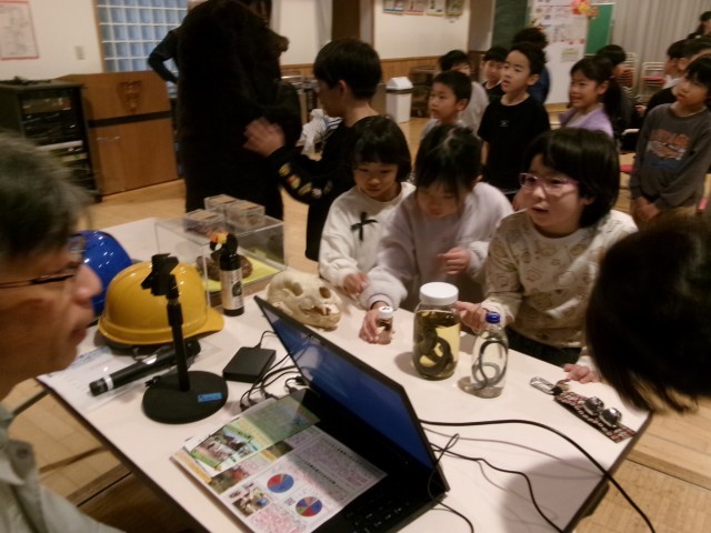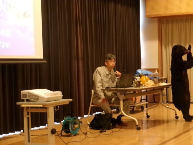 スライドや標本を示しながら、熊について分かりやすく説明をしていただき、子供たちは興味津々で話に耳を傾けていました。