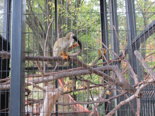 リスザルがいました。群れで生活するのかな。たくさんいました。しっぽが長くて、マフラーみたいに首に巻き付けていました。