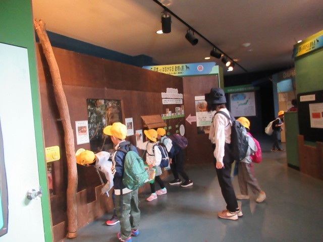 子供たちは、夜の森の展示コーナーを楽しそうに見てまわっていました。リスにも会いました。