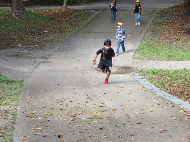 クマ対策で、外に出て走る機会がめっきり少なくなったからでしょうか、何度も楽しそうに走っている子供がいました。また、他校の子供と手遊びを楽しむ子供の姿が見られました。交流が深まりました。