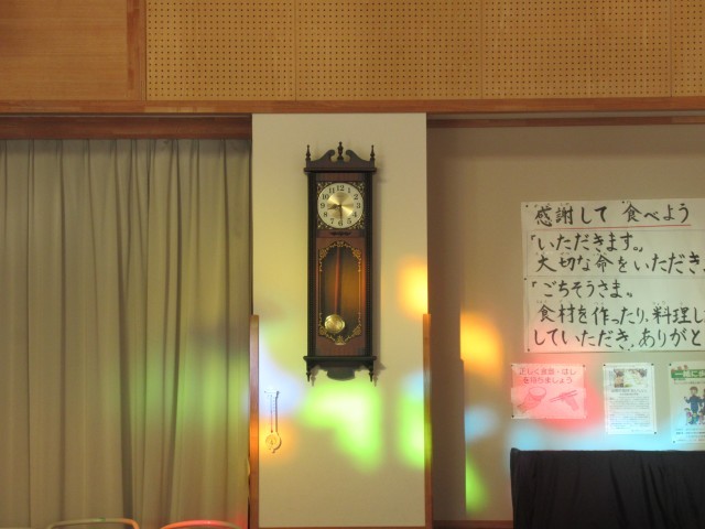 空気が凛とした寒い朝、今日は小春日和になりそうです。校舎内で、幻想的な場面に遭遇しました。ステンドグラスが埋め込んである理由が分かりました。何となく敬虔な気持ちになりました。清々しい一日の始まりです。