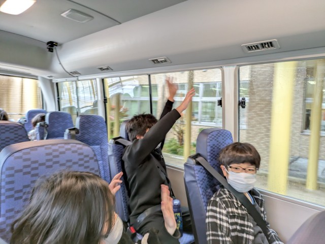 学校招待プログラムで富山市ガラス美術館と富山市立図書館に行ってきます!初めて行く場所にワクワクしている子供たちです。