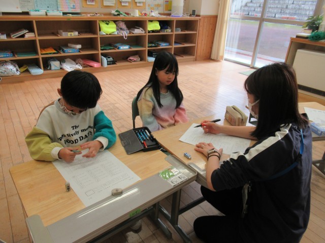 二人の友達がお休み中、元気に登校している二人は力を合わせ、勉強しています。計算チャレンジ問題の練習に取り組んでいましたが、生活科で育てたアサガオの種の数の合計を教えてくれました。なんと1280個だったとか!10のまとまりにして数え方を工夫したという話もしてくれました。