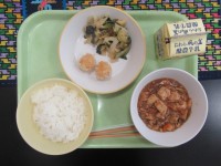 今日の給食は、選択献立でした。子供たちが主菜とデザートを予め選ぶことのできるお楽しみ給食です。