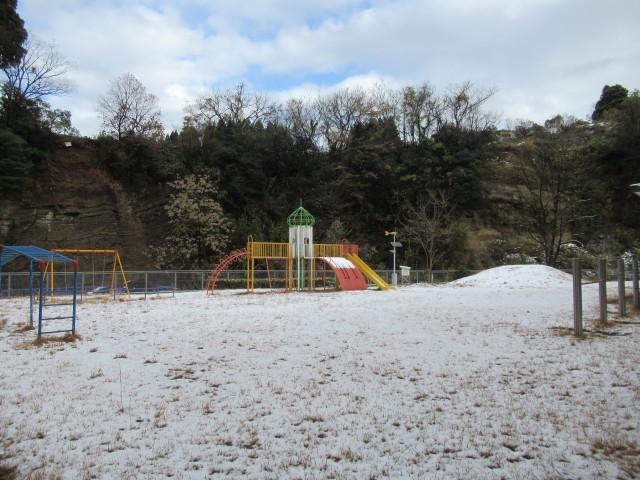 予報どおり、今季初の積雪、外気は冷たくなりました。芝生広場の様子です。どんな雪遊びをしようかと、わくわくしている子供の姿がありました。冬がはじまります。