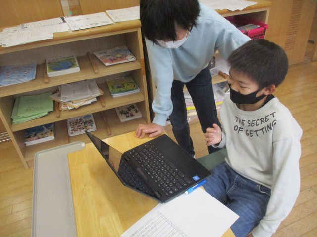 校外学習の振り返りとして作文にまとめています。自分で推敲し、友達の作文を見合いました。「見合っても、間違いが見つかった」「自分で見直すときも気を付けないといけない」と振り返っていました。推敲する力を伸ばしていきましょう。