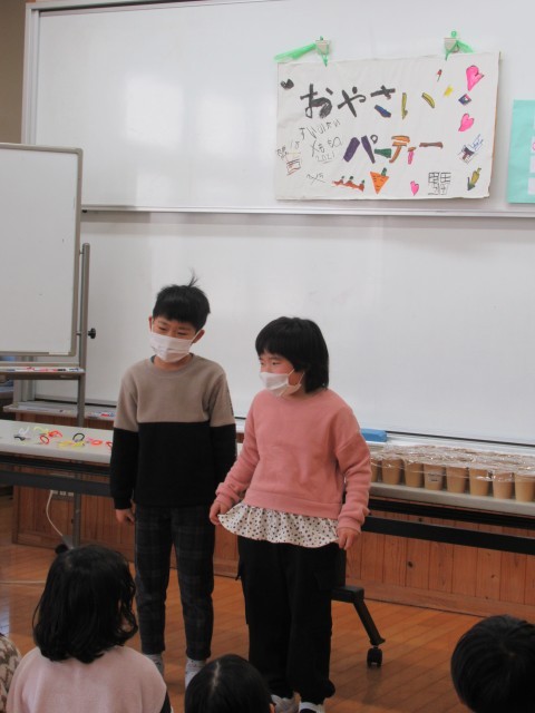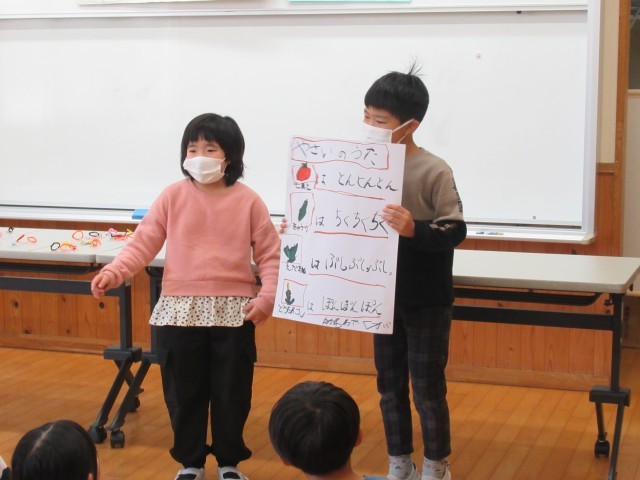9日キラキラタイムに、あおぞら級主催の「おやさいパーティー」が全校児童を招待して開催されました。