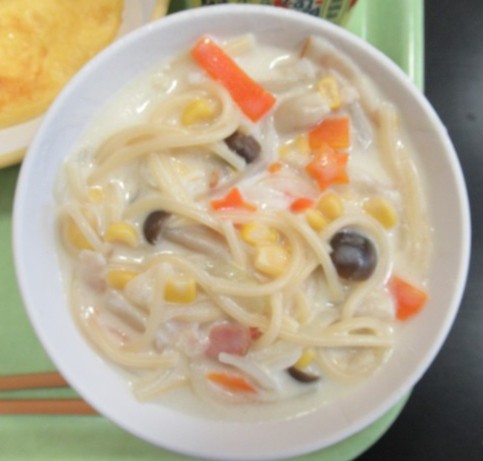 熱々のクリームスパゲッティが、おいしかったです。きっと子供たちも好きな味。小さな星型人参が入っていて、見た目も楽しく、季節を感じていただくことができました。