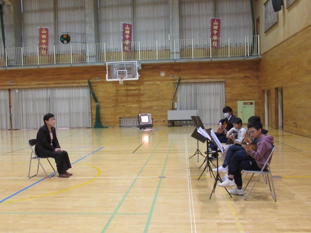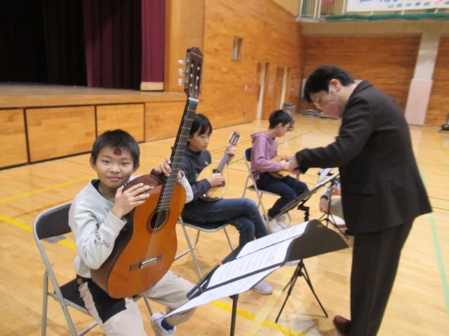 3限、午後からのマンドリン部引退コンサート、マンドリン部解散コンサートに参加できない旧担任のために、6年生の子供たちは演奏しました。曲の仕上がりはよくできていました。最後の最後まで、もっと演奏がよくなるように先生は熱心にアドバイスをしてくださいました。