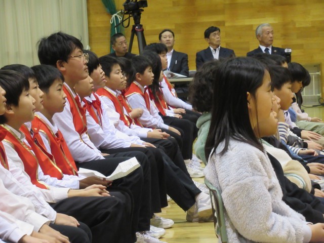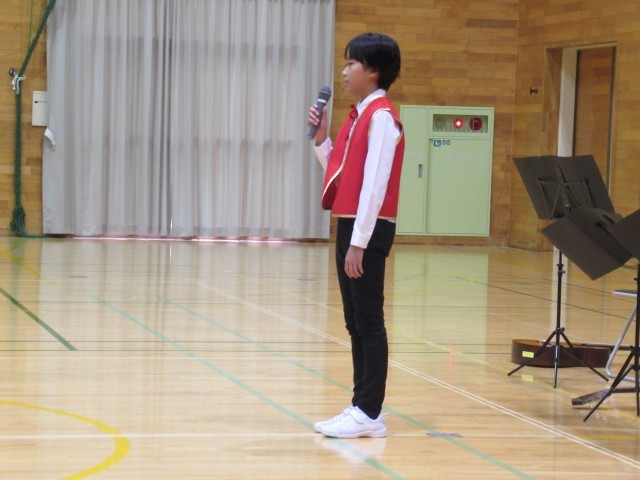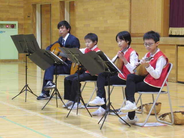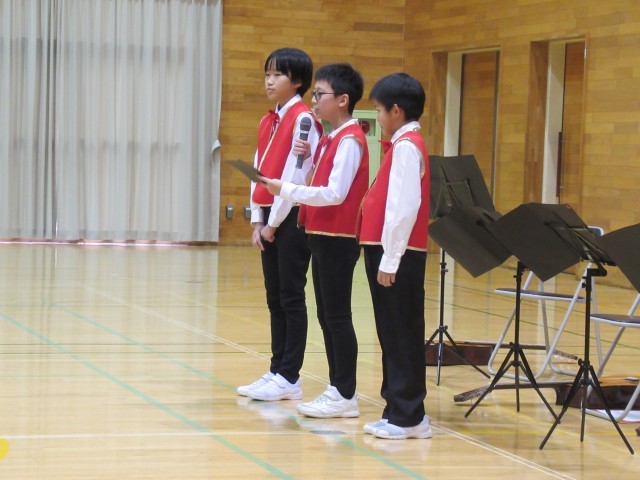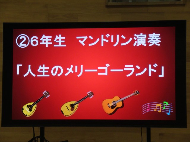 6年生の子供たちにとって、3年間続けてきたマンドリンやギターを全校の前で演奏する最後の日でした。曲目は「人生のメリーゴーランド」。もの哀しいメロディーが「引退」という節目にふさわしく、これまでのマンドリンとの思い出を頭に巡らせながら演奏しているように感じました。会場一体が哀調を帯びた旋律に包み込まれ、引退する6年生の思いを受け止めているように思いました。
