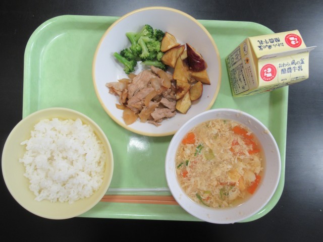 嬉しいことに、本日、トクトク特別メニューで、先日いただいた山田産のサツマイモを使った大学芋が給食に提供されました。甘くて蜜たっぷりのおいしいサツマイモでした。山田の案山子さん、調理員さん、ありがとうございました。