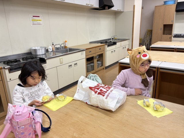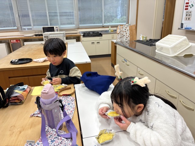作ったスイートポテトは、美味しくいただきました。「おいしい!」「これなら何個でも食べれる!」と食べていました。たくさん作ったので、お世話になった先生方や他の学年にも渡しにいきました。