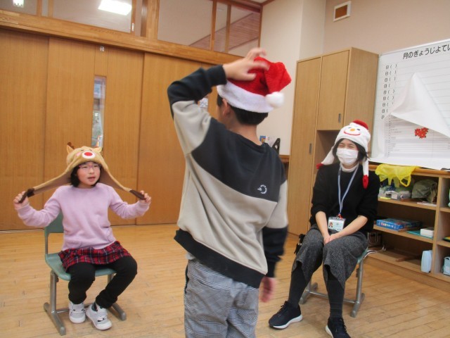 スイートポテト作りの後は、なんでもバスケットや折り紙のプレゼント渡しがありました。みんなで楽しいクリスマスパーティーになりました。