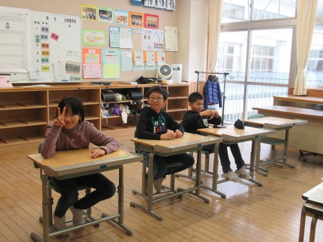 3学期が始まり、今日で3日目。登校してきた6年生を先頭に、5年生…というように、どんどん子供たちがスコップを片手に除雪作業に出てきます。頼もしい子供たちに感謝です。6年生教室では、卒業に向けたプロジェクトについて話をしているところでした。6年生の登校日数は…あと44日?