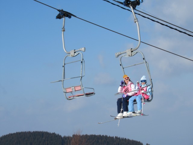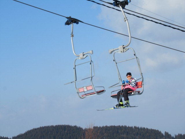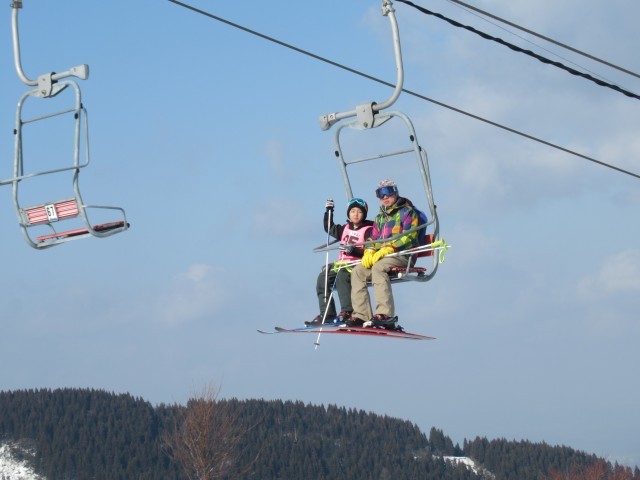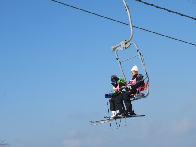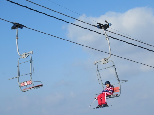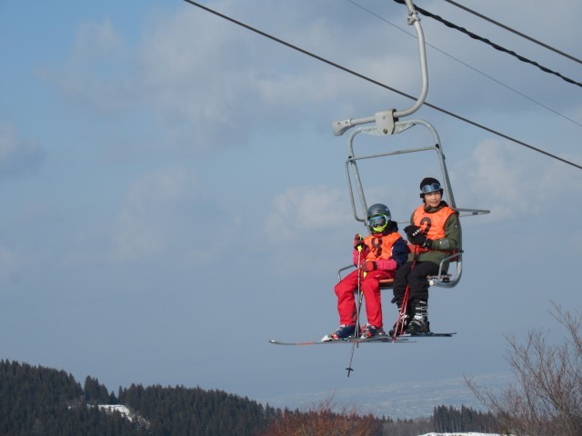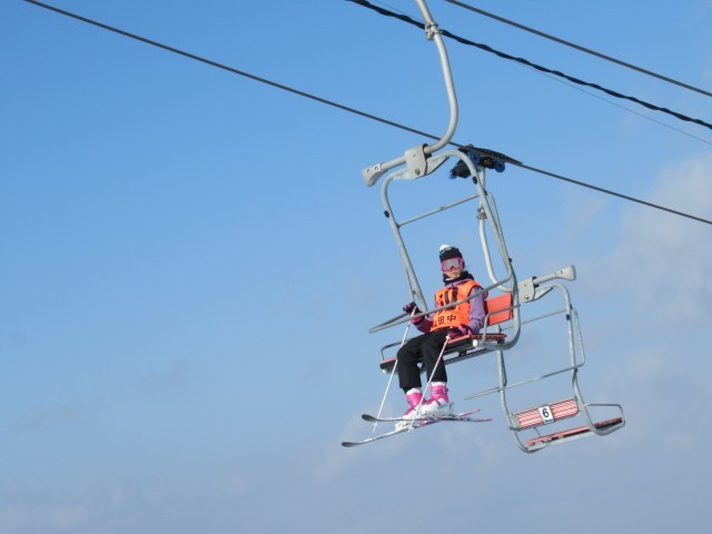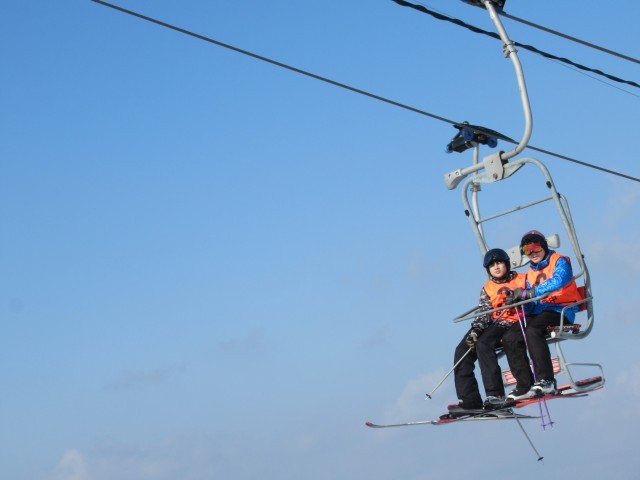 晴れ渡った青い空、ふと見上げると、リフトから声が…。楽しそうな山田っ子がどんどん山頂に上がっていきました。