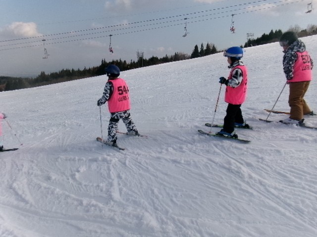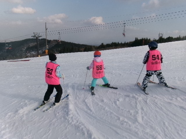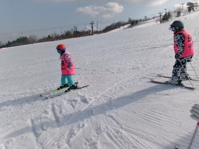 4班のみんなで、曲がって滑る練習をしました。体重のかけ方を教えてもらいました。何度も転びながら、練習を繰り返し、曲がれるようになりました。