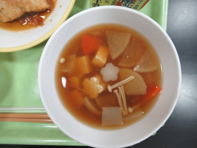 アジがふっくらとして、甘辛いかば焼きのタレに絡まり、おいしかったです。のっぺい汁は、身体が温まりました。梅人参だけでなく、梅豆腐が入っていました。楽しい気分でいただきました。