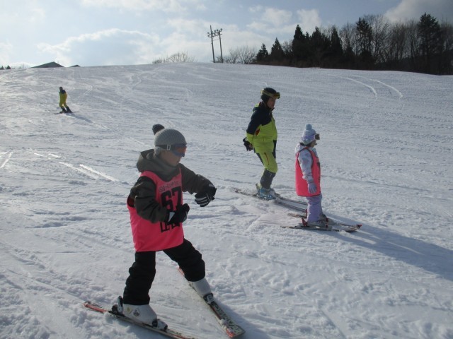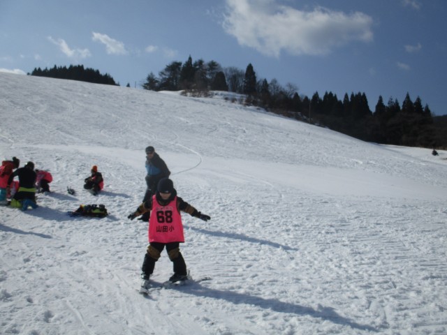 午前中は、ゲレンデの下の方で滑り方を教わり、ハの字で滑る練習をしました。午後からは全員でリフトに乗り、上から下まで1人で滑りました。1日で滑ることができるようになったり、去年より上手になったりと、大きく成長を感じたスキー学習でした。
