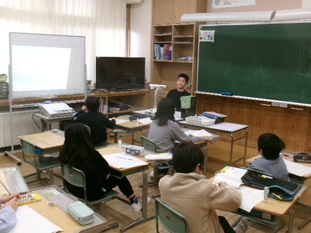 みんなで、題名から連想するものを紙に書き、短い一言で終わる詩を作りました。題名を隠し、何を表現した詩なのかを当てるクイズをしました。子供たちは連想する楽しさを味わいながら、みんなで答えを言い合いました。
