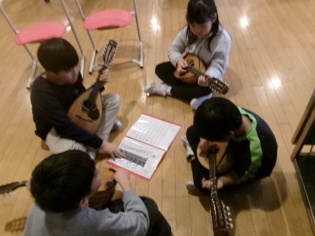 2回目のマンドリン活動でした。子供たちは、練習に熱心に取り組んでいます。優しい上学年のみんなに教えてもらいました。