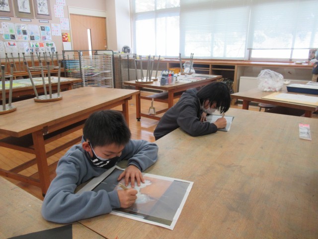 【1月28日】6年生 図画工作科 ドライポイントに挑戦!