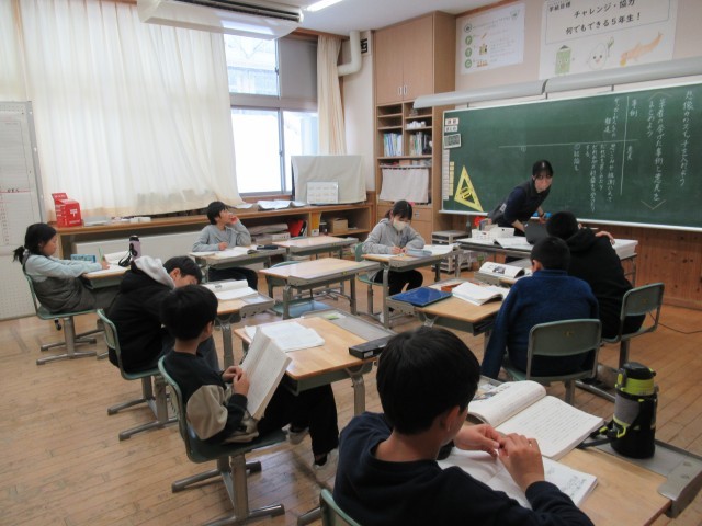 筆者の意見なのか、事実なのか…。筆者の考えは、どこにまとめられているか…。教科書の叙述を辿りながら、考えを出し合い、全体でまとめていました。