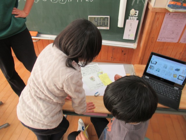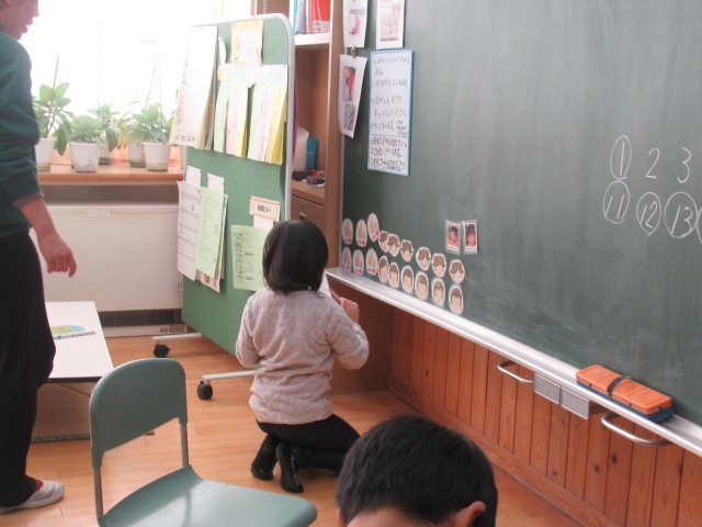 数の学習で、ビンゴ表に好きな数字を書き入れてから、教室内にあるものの数を数え、ぴったりの数字を探しました。見当をつけたり、量感を養ったり、視覚と手と数え方を一致させたりと力を付けていく活動がいっぱい。生き生きと学んでいました。