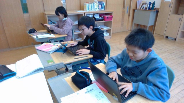 国語科では、日本語の特徴について学習しています。英語と比べて、アルファベットの数よりも仮名文字と漢字が多いこと、語順が違うこと等に気付いています。
